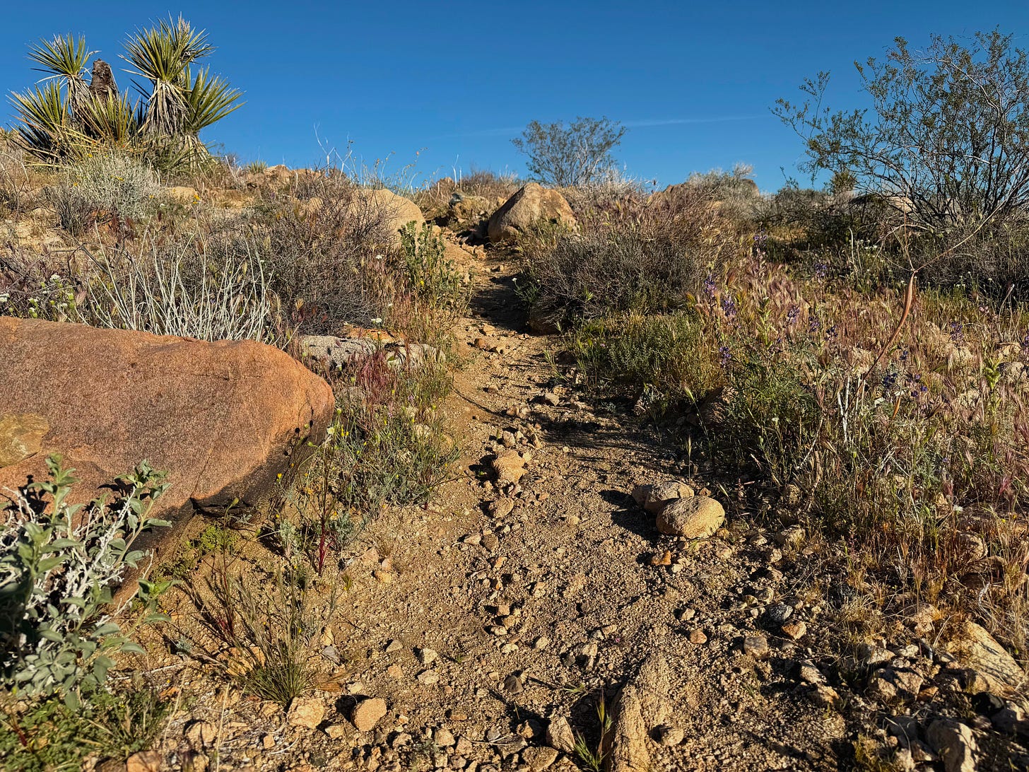 So enjoy the fleeting show. When it’s over, our geophytes will dim the lights and disappear back into their subterranean dreaming. In the meantime, I’ll cast anxious glances over my trail, hoping it remains undisturbed in years to come so that I may encounter my old friends when they next pass this way.