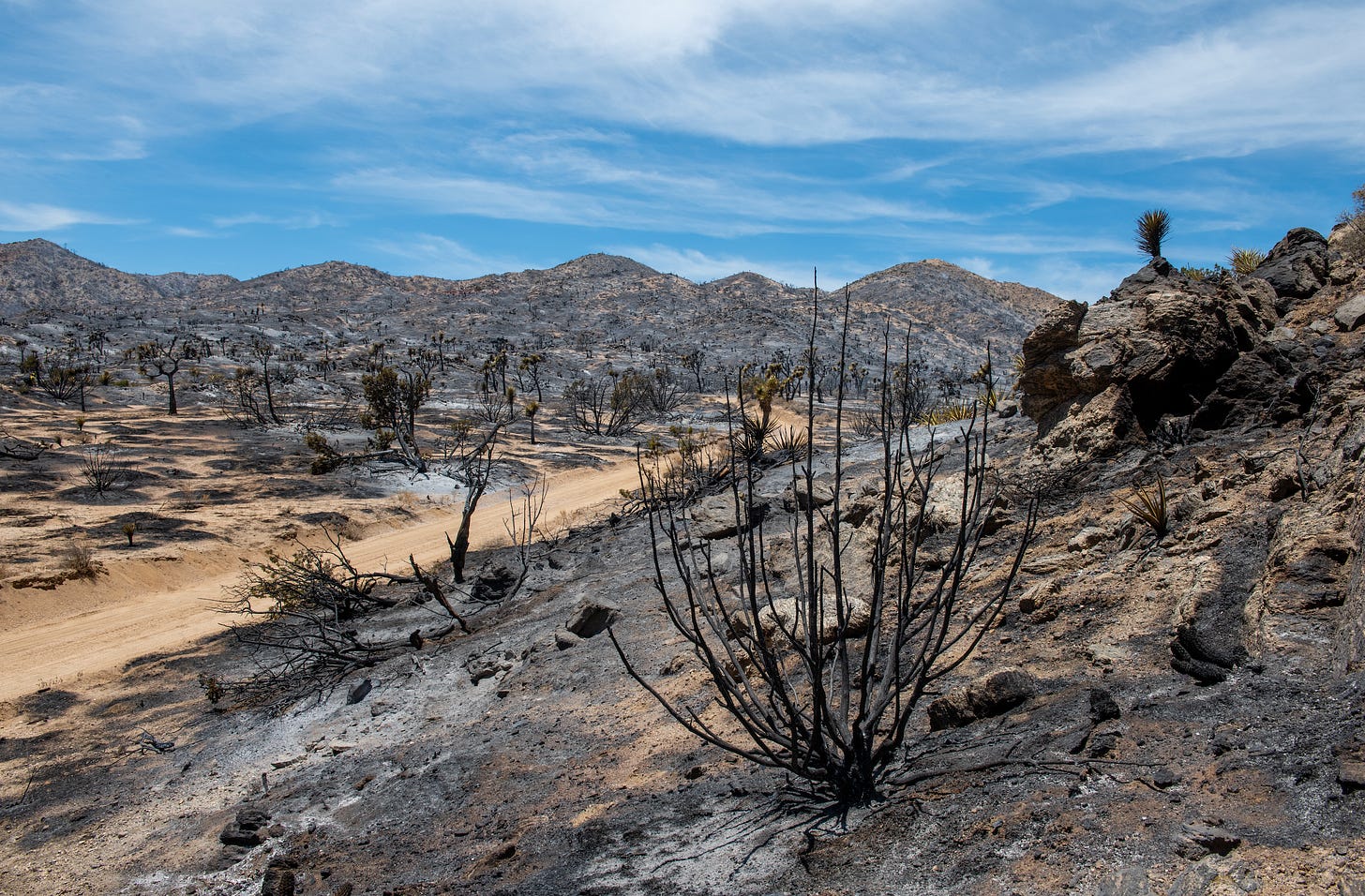Before the arrival of invasive Russian thistles, Eurasian mustards, and an evil cadre of introduced grasses, when lighting strikes ignited isolated desert plants, the decomposed granite floor of the desert limited the travel of flames. Now continuous fuel beds made up of these invasives add velocity to fires and create pathways from plant to plant, leaving behind a post-fire landscape where those same interlopers gain the upper hand. Affected desert scrub areas can permanently shift to a non-native, highly flammable grassland, making the stakes even higher.