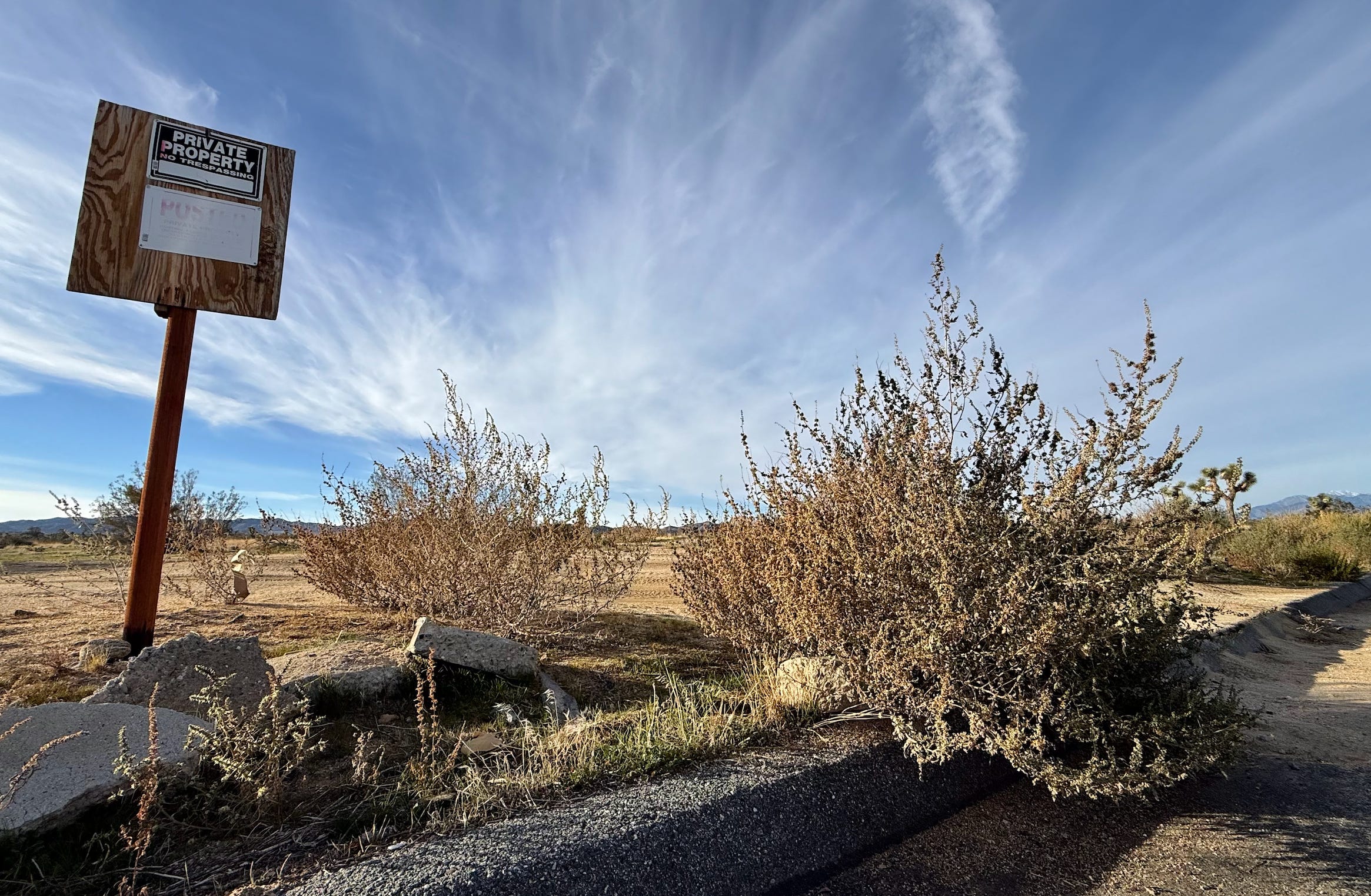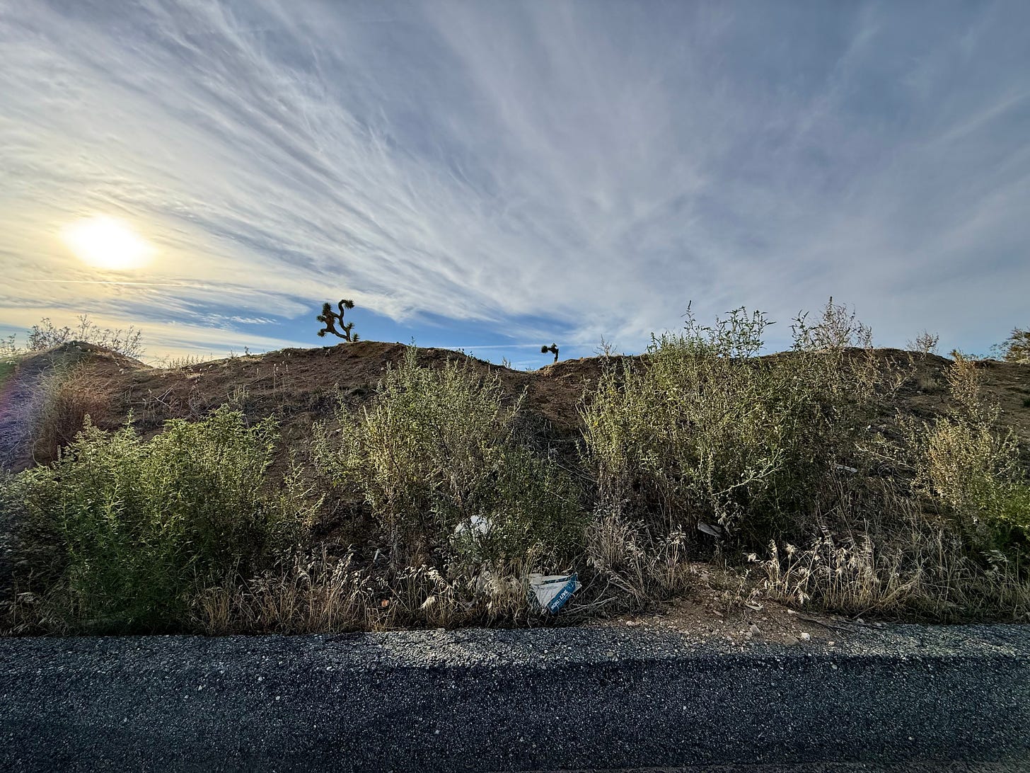 Perhaps the dream is still alive somewhere, but lawns are on the outs. Even self-assured AI can’t estimate the number of times that the phrase “kill your lawn” appears on the internet. We don’t bother with lawns here in the Hi Desert, yet grasses have crept into our lives, as testified by the verdant shadows creeping over the desert floor this winter.