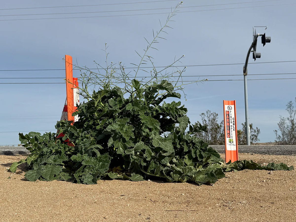 We fertilize invasive plants with nitrogen by burning fossil fuels: whereas desert natives, adapted to nutrient poor conditions, suffer from nitrogen enhancing emissions. We provide disturbed areas to act as invasive seed incubators, and we warp speed evolution by using herbicides that only show these plants how to become chemical-resistant super strains.