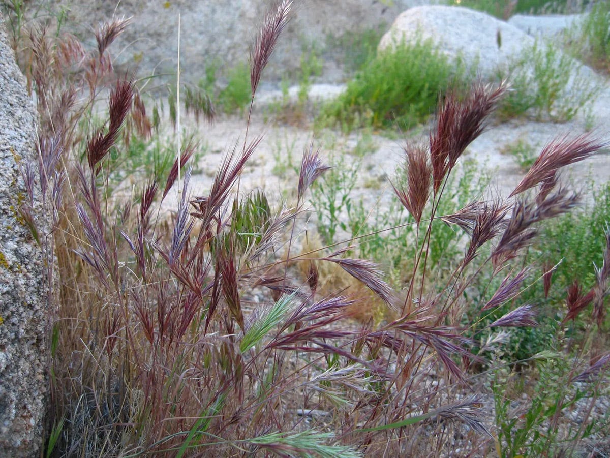 Their seeds masterfully barb socks, worm their way so deeply into pet fur that a wound can form, and tear the mucosal linings of tortoise orifices. It cleverly grows at the base of other plants, remaining unmolested and producing hundreds of seeds per plant. Like fellow black hats Russian thistle and Sahara mustard, bromes have developed resistance to herbicides.