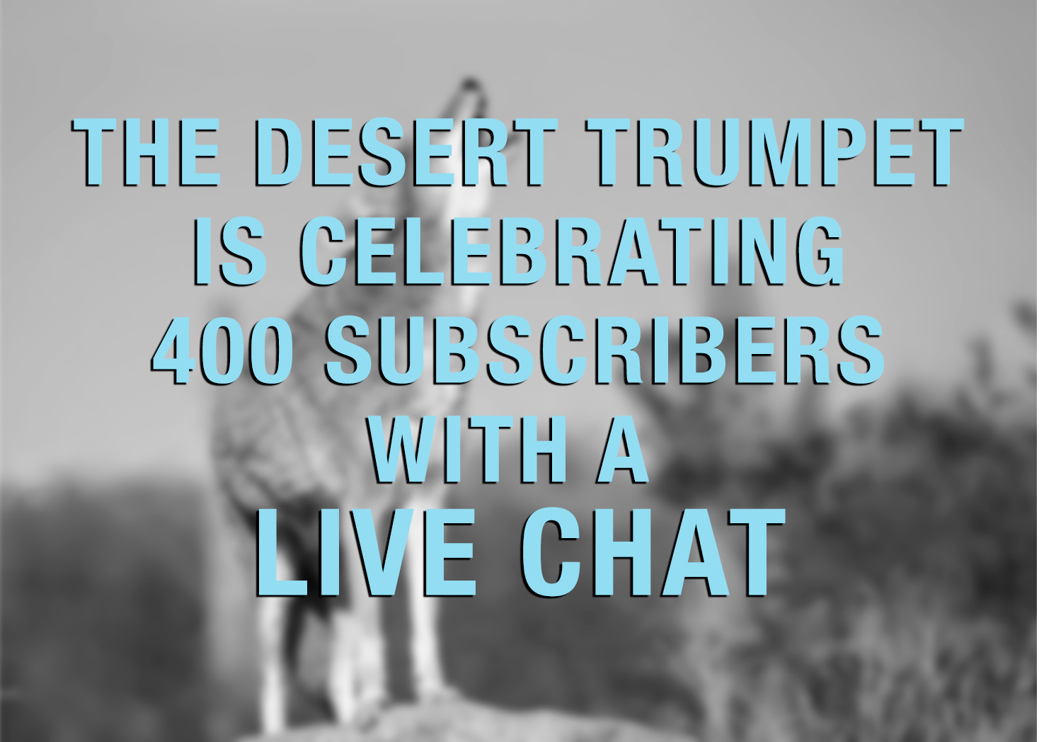 In celebration of reaching 400 subscribers, we’re announcing a brand new addition to The Desert Trumpet: live subscriber chat. We think this will be a great tool for getting to know each other, sharing information and discussing issues facing our City. We’re kicking our chat off TODAY and will live chat tonight’s (November 8) City Council meeting and the election results starting at 6pm.