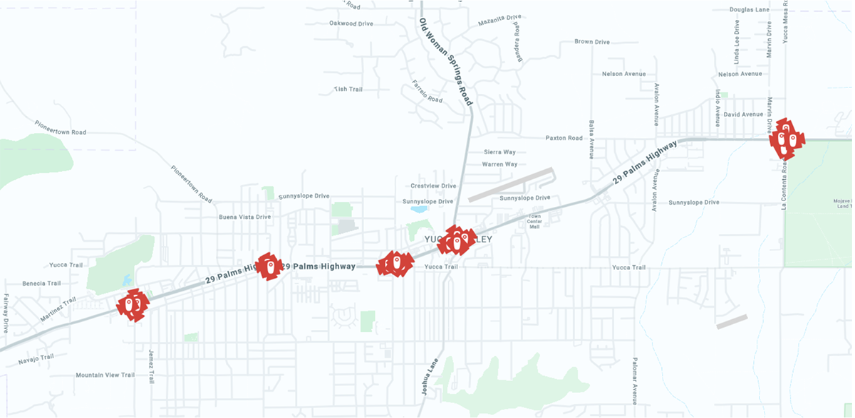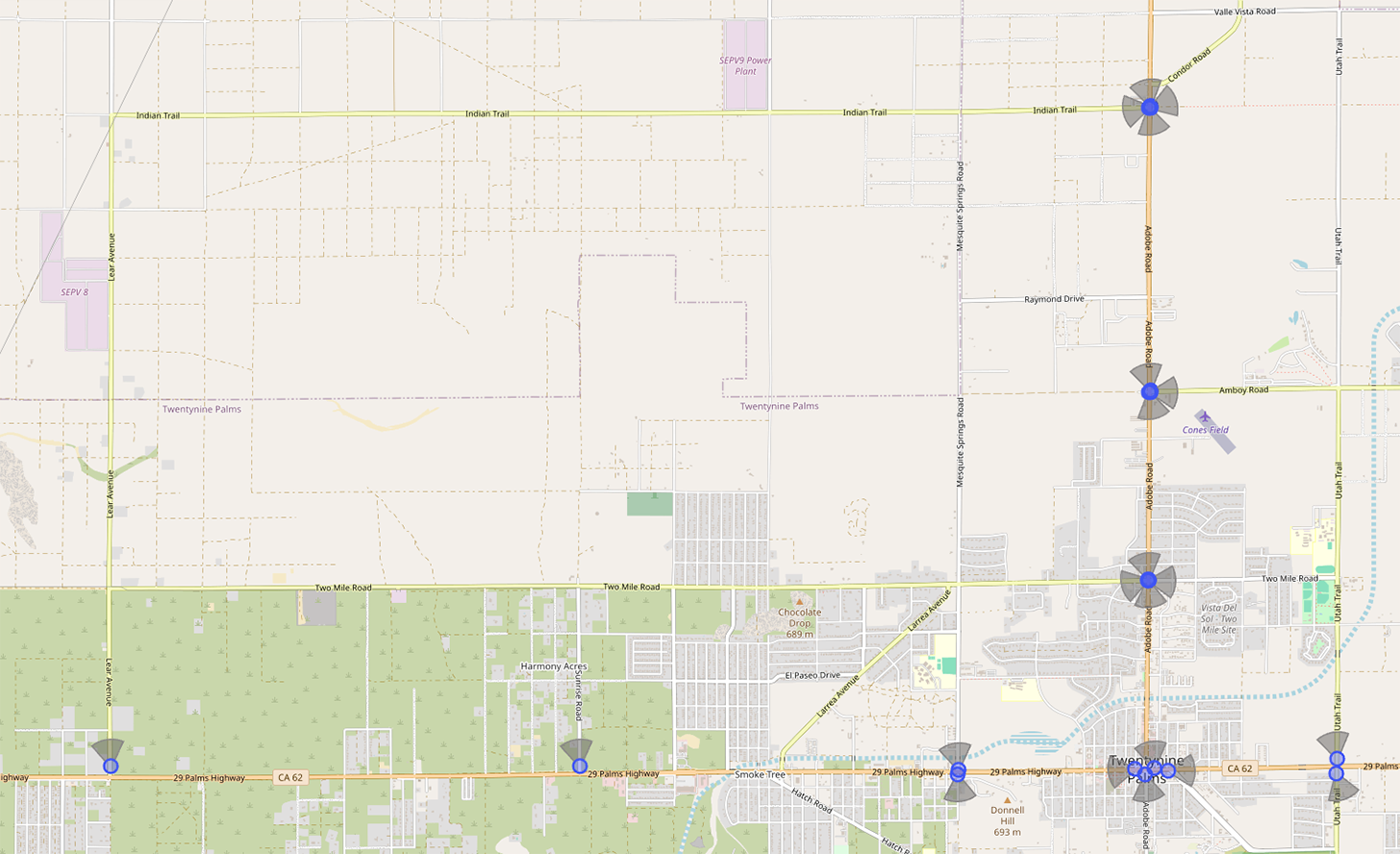 Note: The Twentynine Palms map originally posted and emailed showed cameras at Two Mile and Lear. The map was later updated to eliminate those cameras - there are not currently cameras located there.