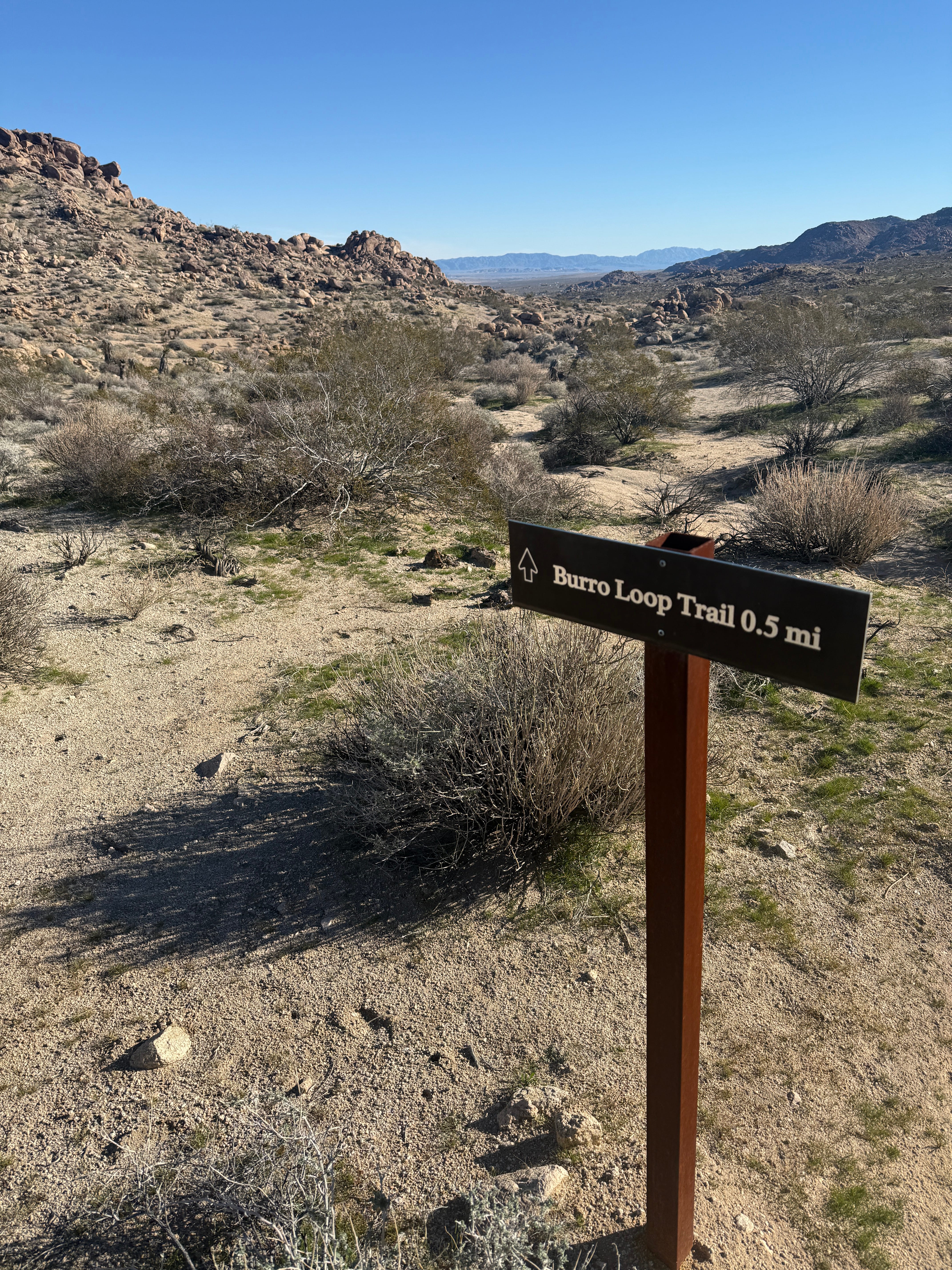 Horses and burros are not native to the desert or even North America, and feral equines can be very destructive to the environment. There are small herds of feral burros in Death Valley National Park and the Mojave Preserve, and although they damage vegetation and water sources, they are protected under the 1971 Wild Free-Roaming Horses and Burros Act, which makes it illegal to harass or remove them without authorization. There are no feral burros in Joshua Tree National Park, although a hiking friend tells me that in the 1970s, a few escaped from a corral and roamed parts of the park for years before being captured.