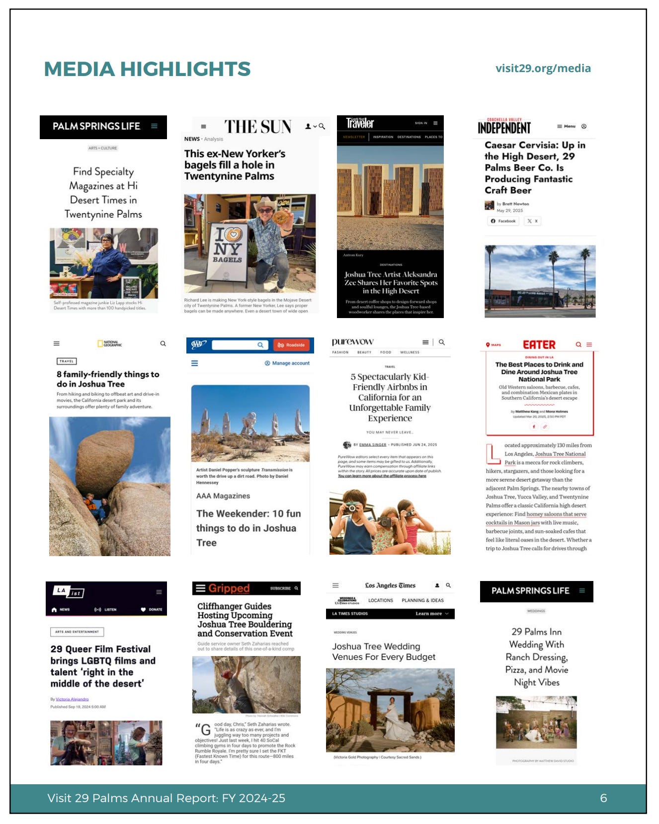 The 2025–2026 Plan aims to build on the work done to promote Twentynine Palms as a tourist destination in years past and aims to provide greater context for the TBID’s proposed initiatives and outline why these strategies can help achieve the TBID’s objectives of “sharpening the city’s destination identity, expanding year-round tourism offerings, and leveraging its unique assets to attract more overnight visitors.”
