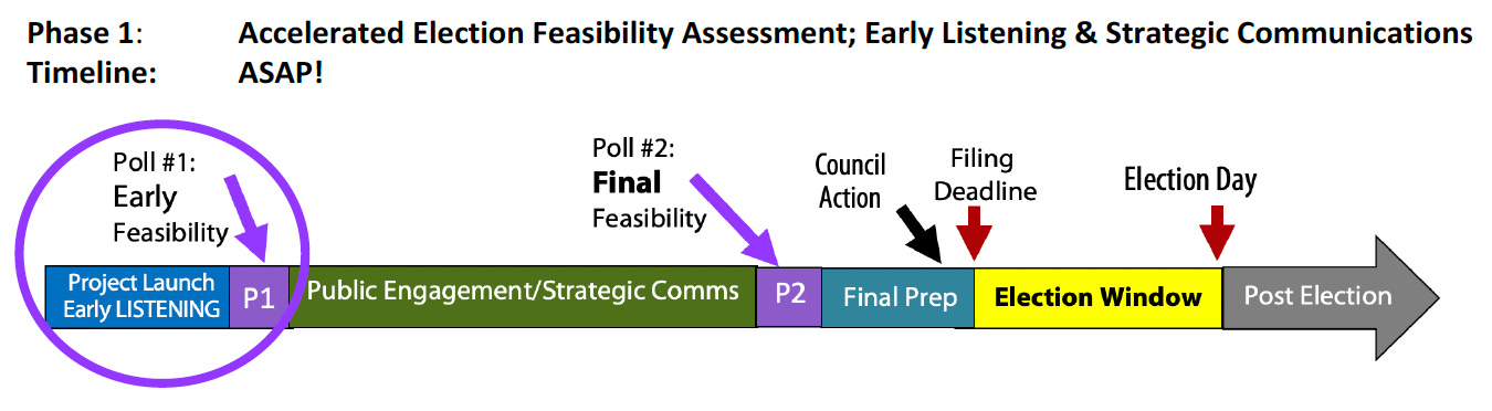 “Improving the Accuracy of the 2025/2026 Community Assessment.” The Community Assessment refers to the controversial allotment of close to $100,000 for two consulting firms hired at the October 14 meeting to sell residents on a 1% sales tax increase, anticipated to be on the 2026 ballot. This item covers approval of the first phase of the contract with Clifford Moss to oversee Probolsky Research in the execution of an election feasibility study, cost $14,000.