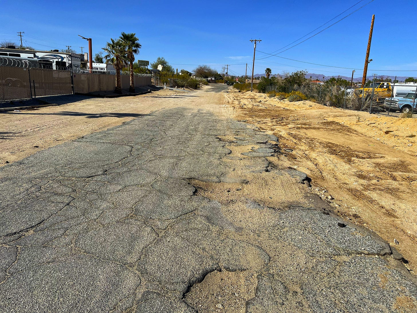One would think that all roads within the City, unless they are private, would be maintained by City public works crews. However, in Twentynine Palms this is not the case. Take the south end of Pine Avenue, for instance, a paved road within City limits that is not maintained by the City. Despite the City’s public works office being just up the road from Pine Avenue, on Bullion, and City vehicles needing to travel this road daily, the road itself is pitted with potholes.