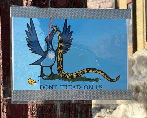We had brunch with Jules’s son Hank. He’s an observer in the Powderhorn neighborhood of Minneapolis, which had seen many ICE abductions until the troops moved into less-central neighborhoods, like the northeast area. Hank told us, “When ICE leave, they’ll drop a canister of tear gas just to be assholes.” He’d been tear-gassed several times.