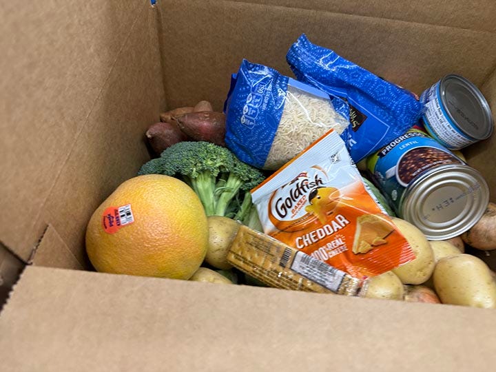The coordinator said this was more than ordinary food insecurity and that they’d stepped up accepting contributions and donating food in a situation “manufactured by ICE.” I was first in an assembly line of a nine or ten volunteers filling cardboard boxes with cabbages, beets, sweet potatoes, onions, oranges, and apples. I ripped open 50-pound bags of cabbages, shucking off bruised or scraped outer leaves. “Cannonballs of justice,” I thought, imagining the people who were going to receive the boxes, making the cabbage as pretty as possible, treating them with dignity and respect—the cabbage and the community. Taylor added a dozen beets to the boxes, imagining people opening them and saying, “oh boy, beets!”