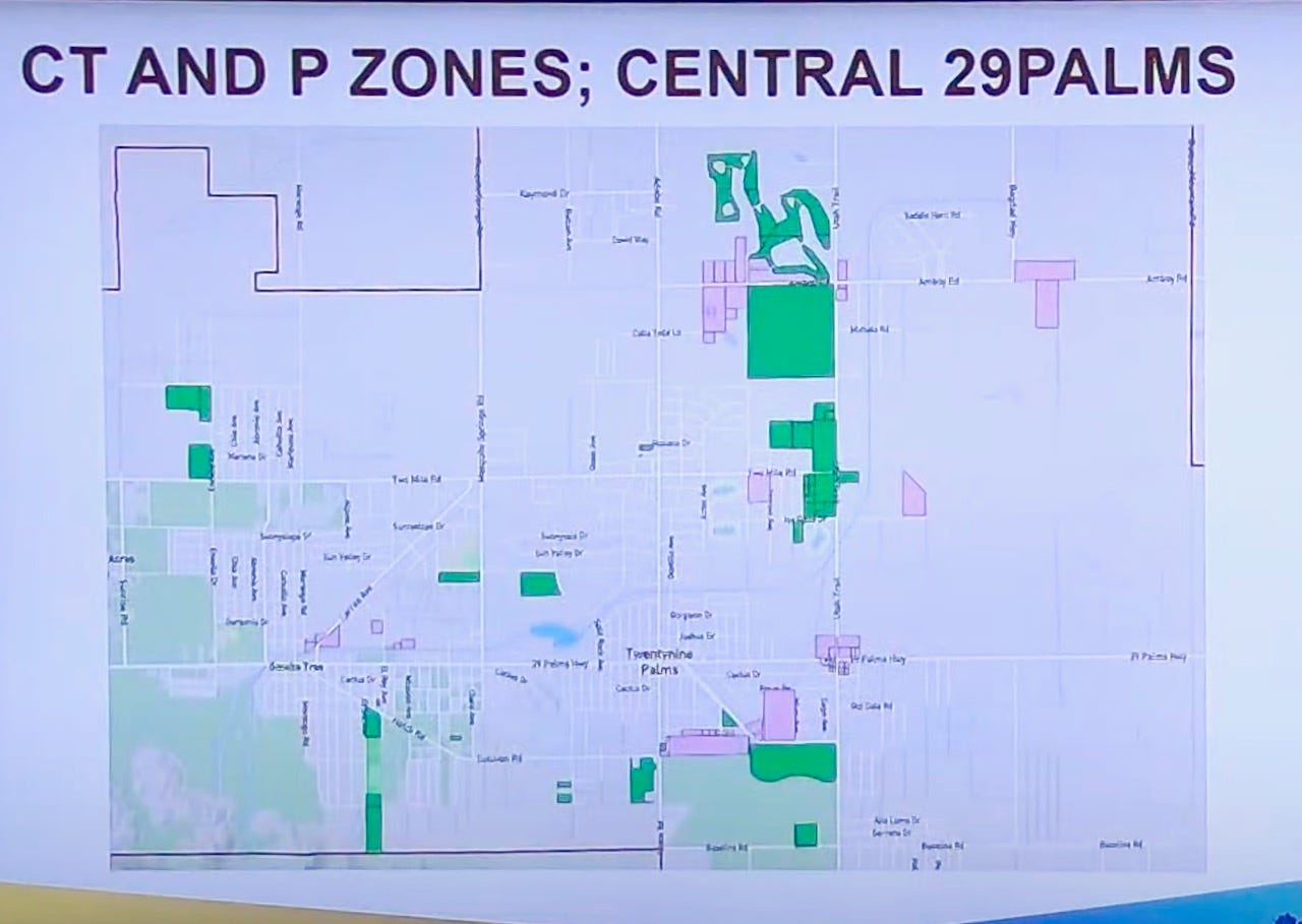 By the time of the fourth meeting in February 2024, research had led staff to recommend against commercial campgrounds being allowed anywhere in the City in part due to the limited amount of appropriate Commercial Tourist (CT) zoning. Per the Development Code, Commercial Tourist zoning “allows tourism-oriented uses, such as resorts, RV parks, golf courses, restaurants, gift shops, art galleries, hotels/motels and entertainment facilities, primarily intended to serve visitors of the Joshua Tree National Park and the Marine Corps Base.”