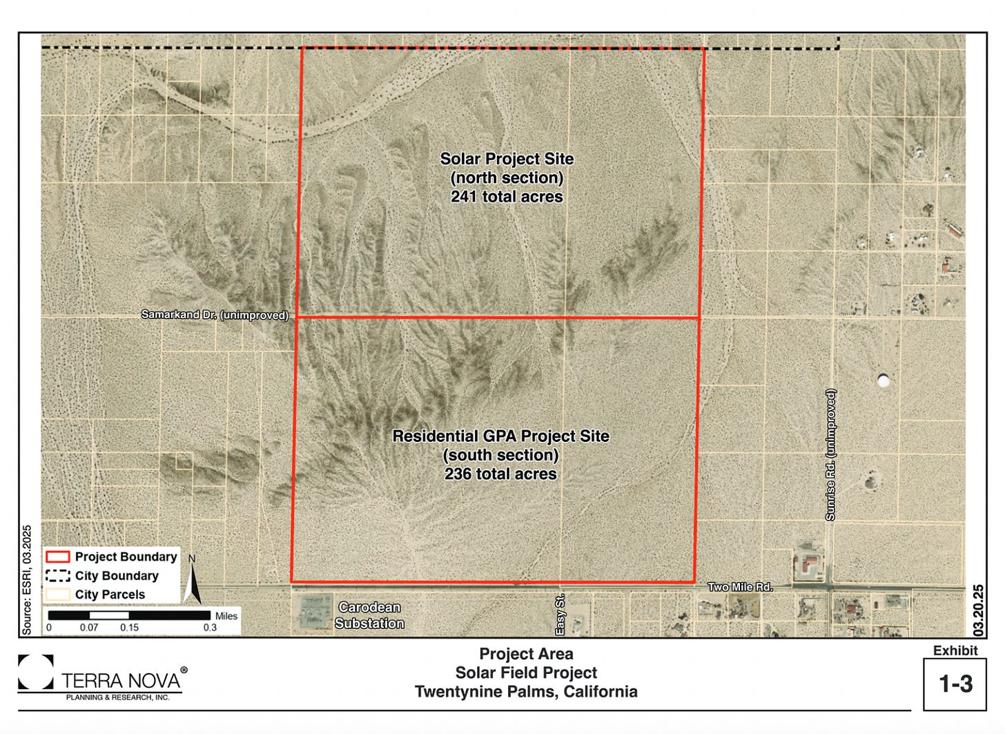On December 9, 2025, a draft of the Environmental Impact Report for the E-Group PS Solar Project was released. The report, which was prepared by Terra Nova Planning & Research, can be accessed via the City of Twentynine Palm’s website. The 45-day public review period is open until January 22, 2026. During that time, both individuals and public agencies are able to submit written comments on the draft to Community Development Director Keith Gardner at Twentynine Palms City Hall at kgardner@29palms.org or the City of Twentynine Palms, 6136 Adobe Road, Twentynine Palms, CA 92277.