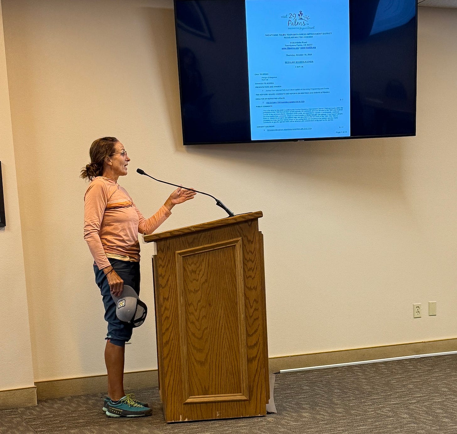 In public comment, Caitlin Gill of Joshua Tree Astronomy Adventures and board member of Rediscover 29 acknowledged the importance of celebrating wins and suggested supporting and helping the venues that are here improve, such as the drive-in movie theater. She also noted that larger events need to ensure they make a profit, noting,