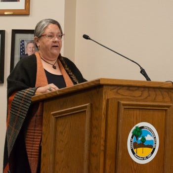 LeeAnn Clarke reported on several recent Action 29 Palms and 29 Palms Ministerial Association events including the signing of the restored “large lizard” by Chuck Caplinger. Clarke closed by thanking City Manager Stone James for his service to the community, noting “we understand you’re going to be moving on in a couple of months.”