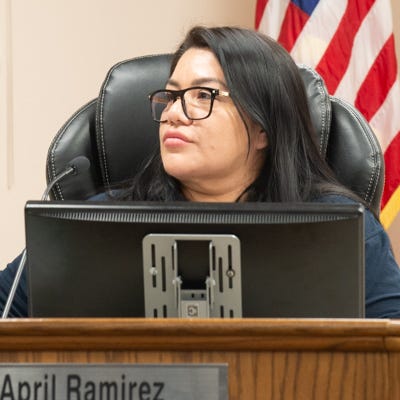 Councilmember April Ramirez's attempt to reopen the E-Group Solar Project discussion died for lack of a second. Her other two future agenda items — on Prop 36 and Code Enforcement and the annexation of two parcels, one being the location of Set Free Ranch — were seconded but lacked clear context.