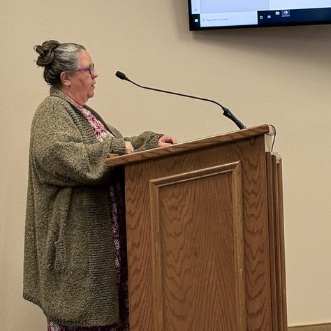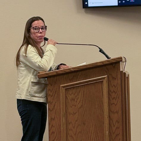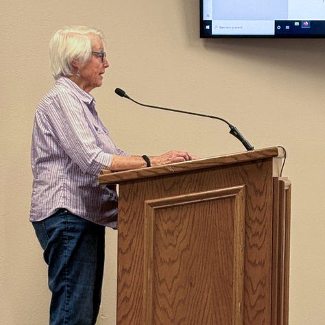 Suzanne Lyons reinforced those concerns with her own calculations based on inverter capacity, estimating a maximum output of roughly 38 megawatts. Lyons questioned why the 50-megawatt figure had been used to frame the project as inevitable under state law, noting that AB 205—which lawyers for the developers claim will force the City to develop the solar project—still requires environmental review.