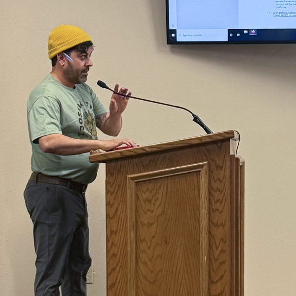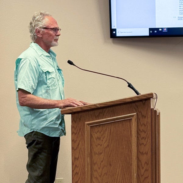 David Fick of Joshua Tree argued that the Harmony Project’s 170-plus acres were unlikely to produce even 40 megawatts. He urged commissioners to scrutinize what he described as inflated claims and reminded them that approval authority rests locally, not with the state. He said: