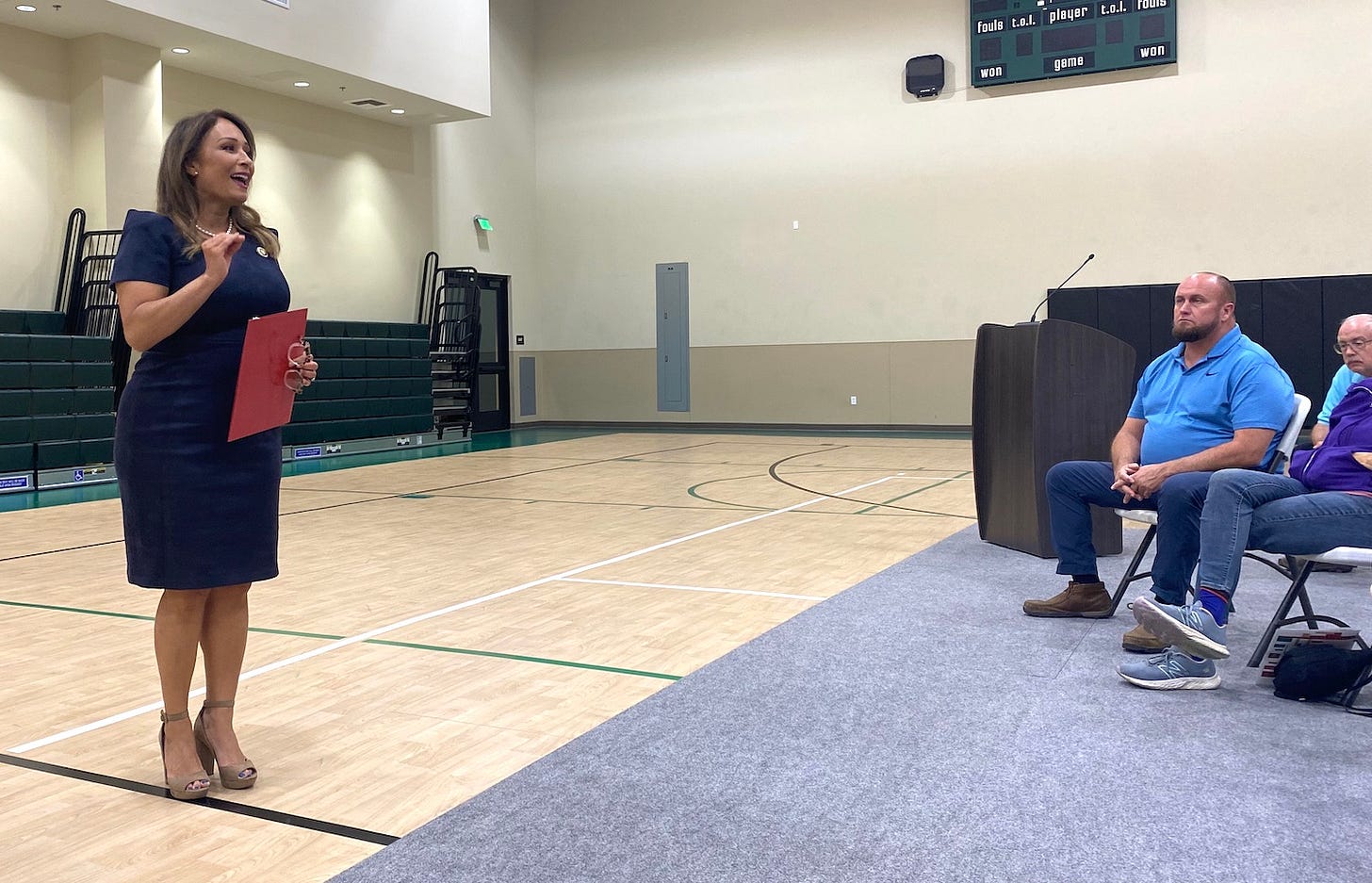California State Senator Rosilicie Ochoa Bogh came to Twentynine Palms on Wednesday, October 29 to host a town hall meeting in the Freedom Plaza gymnasium. About 35 people attended, along with elected officials including members of the Twentynine Palms City Council, the Morongo Unified School District, and the Twentynine Palms Water District.