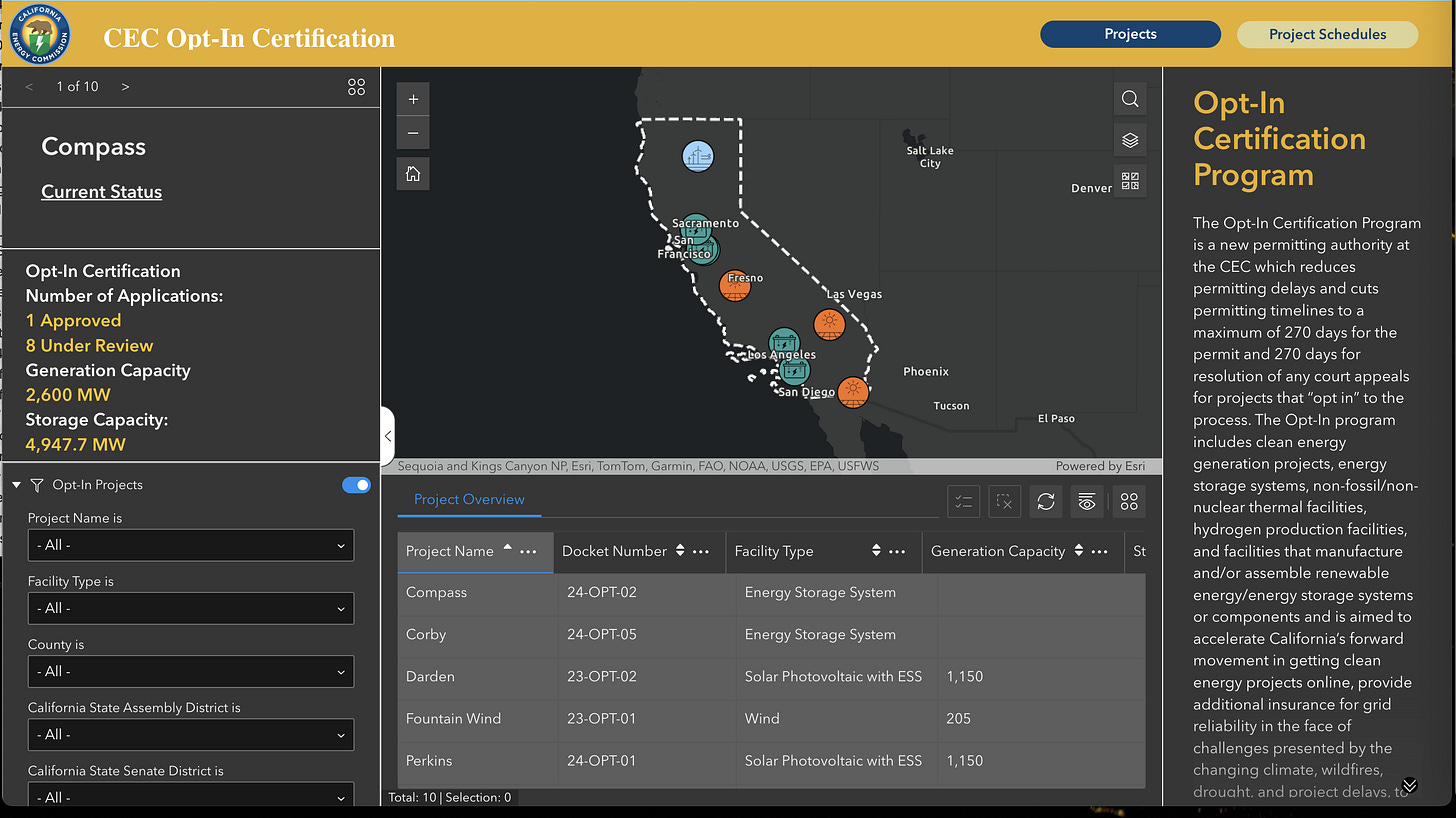The CEC’s Opt-in dashboard is here. Only three solar projects are under review, and all are much larger than the Geneva Solar Project, the formal name for the E-Group PS project.
