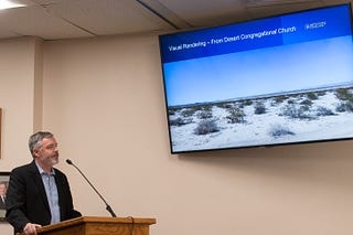 Long-time Twentynine Palms homeowner Chris Tiffany expresses opposition to the project—the public comment period ends Thursday, January 22